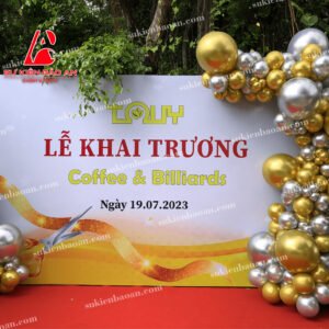 Để thay cho lời chào đón khách đến tham dự và cũng tăng thêm sự thu hút khách hàng. Các bạn nên trang trí một backdrop checkin, trên backdrop có đầy đủ thông tin về cửa hàng và thương hiệu.
