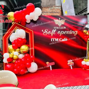Trang Trí Backdrop Khai Trương Màu Đỏ Ấn Tượng – Độc Đáo