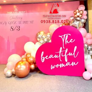 Chúng tôi cung cấp dịch vụ trang trí backdrop 8/3 từ những vật liệu chính là bạt hiflex, formex, trang trí thêm bong bóng, hoa tươi, hoa lụa rất phù hợp với sự dịu dàng, nhẹ nhàng của Người Phụ Nữ Việt Nam.